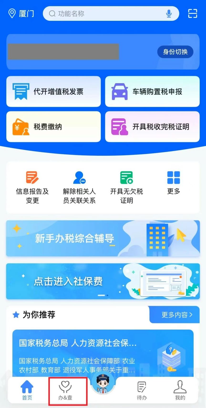 也可以通过“电子税务局”App进行线上缴费,首页定位厦门后,点击下方【办&查】-【社保业务】-【社保费缴纳】-【社保费申报缴纳】-【灵活就业人员社保费申报缴纳】模块可自行或代他人缴纳社保费。