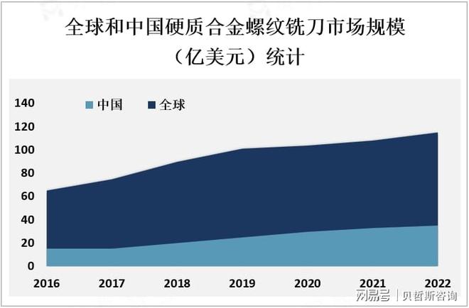 中国是全球最大的硬质合金螺纹铣刀生产和消费国家之一,市场规模也在不断扩大。根据中国机械工业联合会的数据显示,2019年中国硬质合金螺纹铣刀市场规模达到了约60亿元人民币,预计到2025年将达到约100亿元人民币,年复合增长率为6%左右。